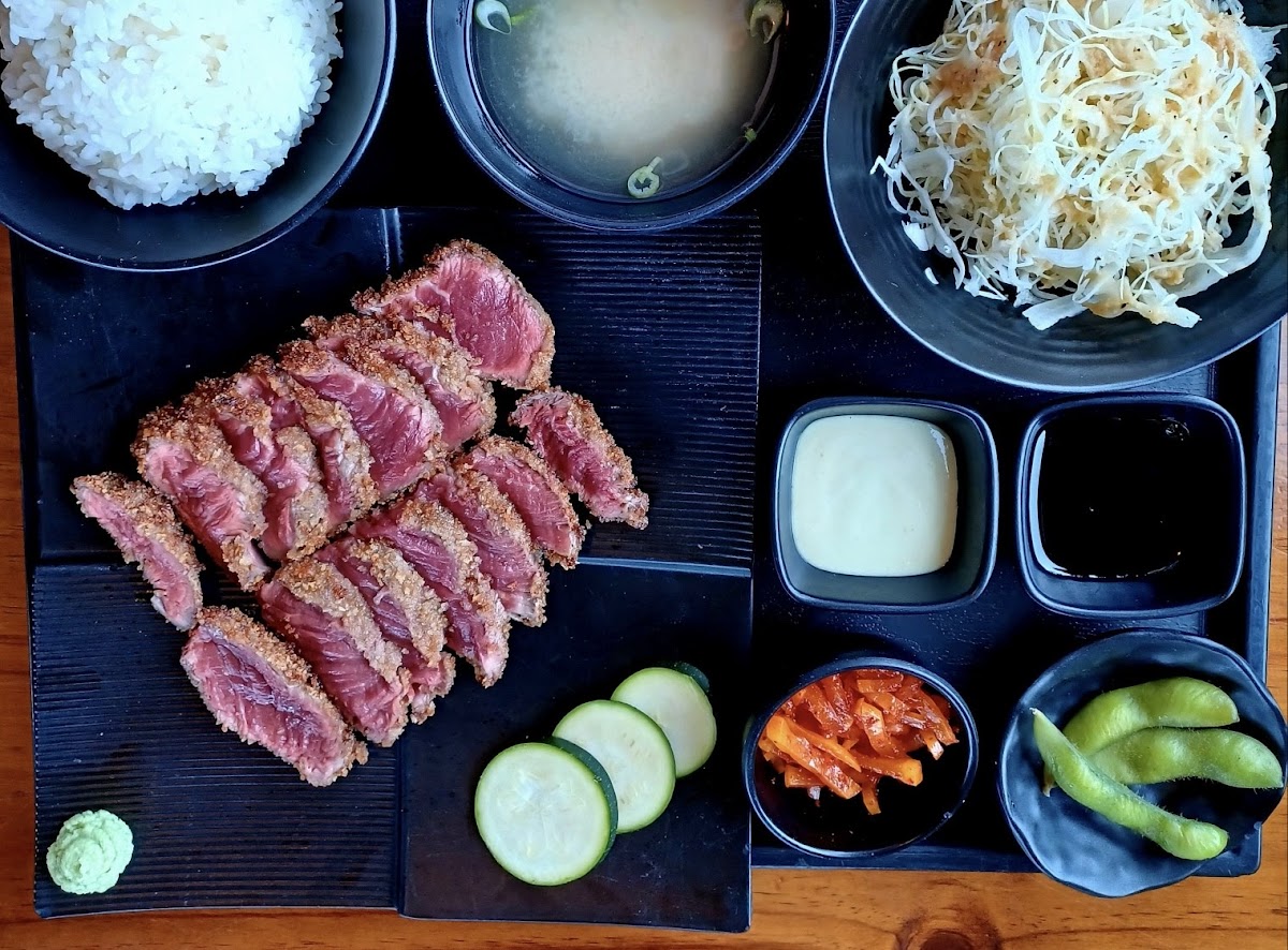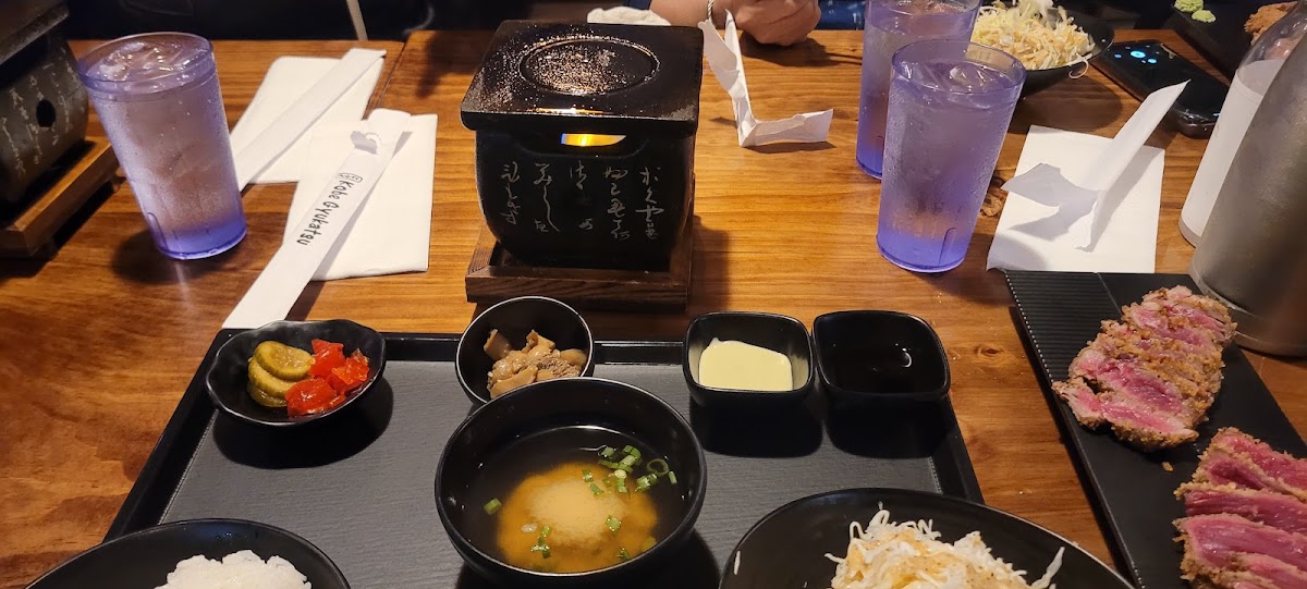 First off, you clearly don't go to Kobe Gyukatsu for the atmosphere. It looks to be a repurposed, old, perhaps very old, dive taco shop. Okay, now that's out of the way. One goes to any restaurant for the food. And this is where they excel. As it should be. As one might expect they offer many versions of katsu. My introduction to this dish was a hole in the wall spot on the island of Oahu. The pork cutlets were perfectly breaded. The dipping sauce was sublime. (Here they added sesame seeds to the sauce, which I quite liked.) The finely shredded cabbage was topped with an oh so light dressing that was both tangy and slightly sweet. These were accompanied by slightly sticky rice, which was perfect. Kobe Gyukatsu replicated this meal to perfection. They also added some pickled radish kimchi, and a bit of edamame. And come with either a large appetite or the idea that you're going to be taking half of your meal home for leftovers. They lose a star for service because each table comes with a tablet, which is how you place your order. I also threw in a couple images of the tablet showing ads which can, I suppose, be helpful sometimes. But as I often dine alone due to travel for work, I prefer to interact with a human being when I do go out to have my evening meal. If half stars were available, they might get half a star back for service. Why? Because not only did I get a to-go box, but I also got a container for my sauce, and another container for the remainder of my kimchi. So..... Good katsu for a reasonable price. And it doesn't require a 6-hour flight. I'll be back.